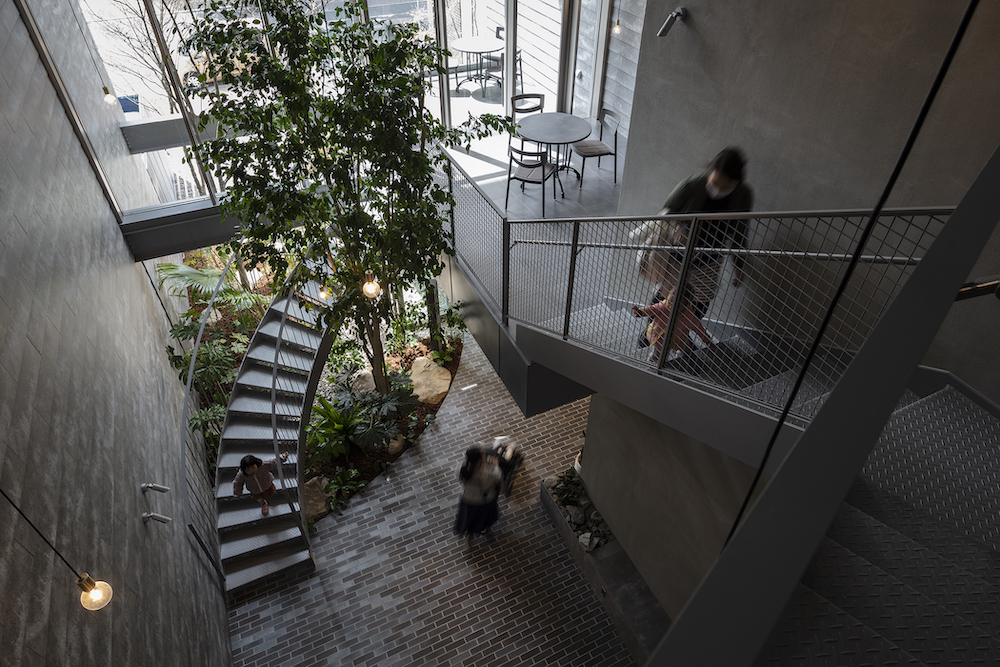 この建築は、呉に根付いた「 通りで交流する独自の文化」 から着想し、誰もが自由に出入りできる街路空間を立体的に織り込みながら都市に奥行を生み出している。空間の自由度を高め、自然と居心地の良い場所で脚を休めることのできる「木陰のような」都市的空間の創出を目指している。